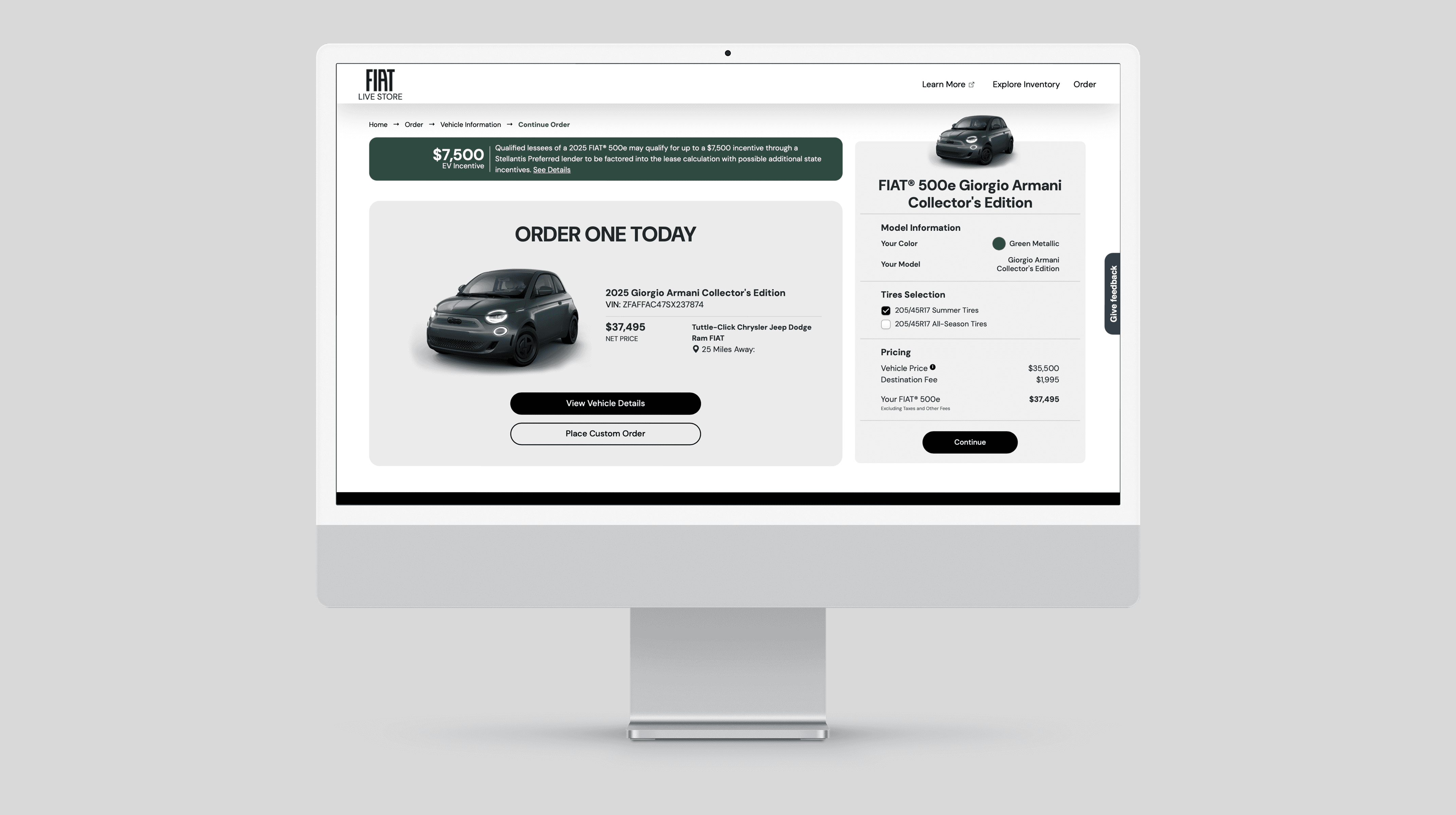 fiatlivestore.com is the digital showroom for Fiat Automobiles S.p.A. I was tasked with redesigning the landing page and checkout flow for their latest collector's edition vehicle.
